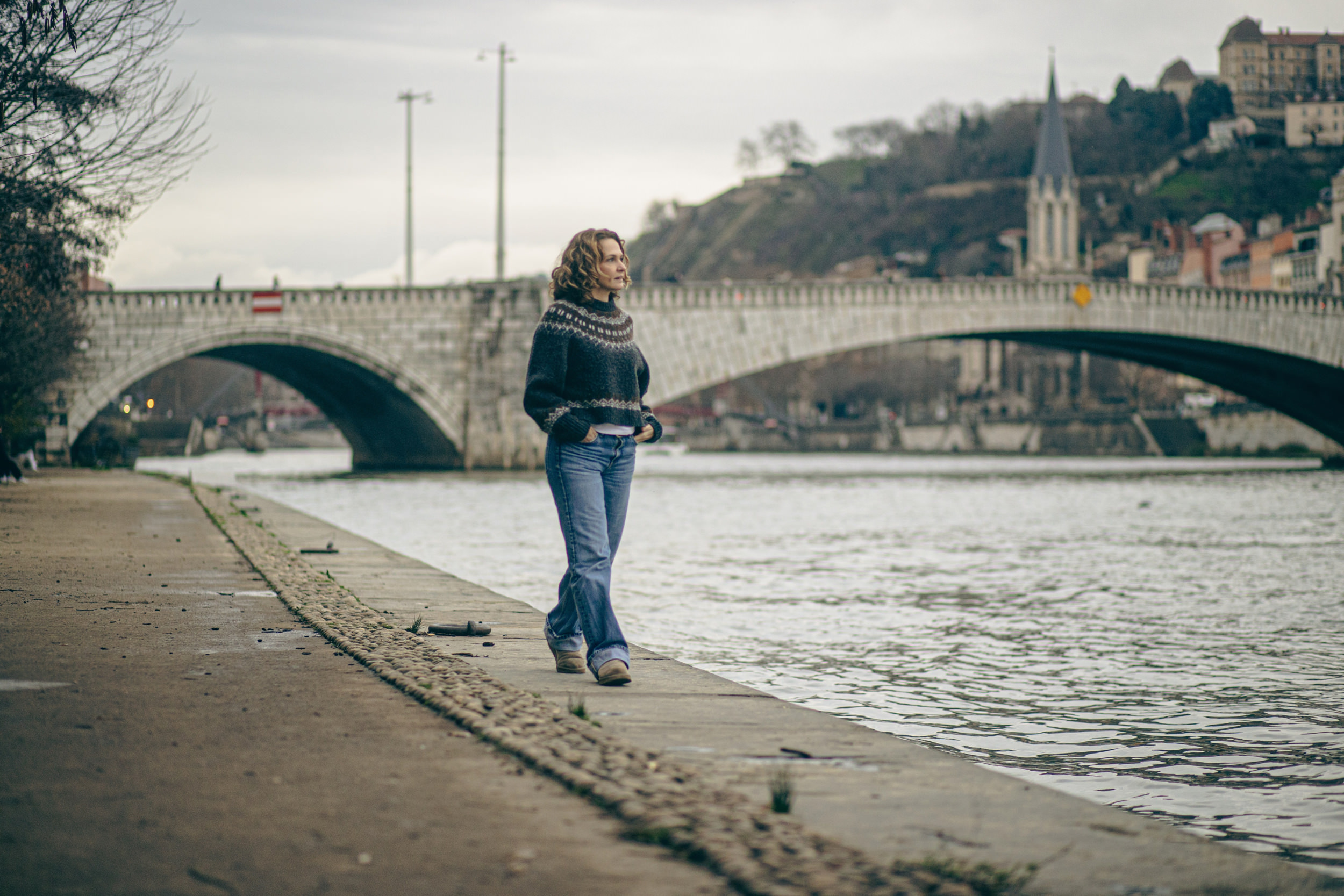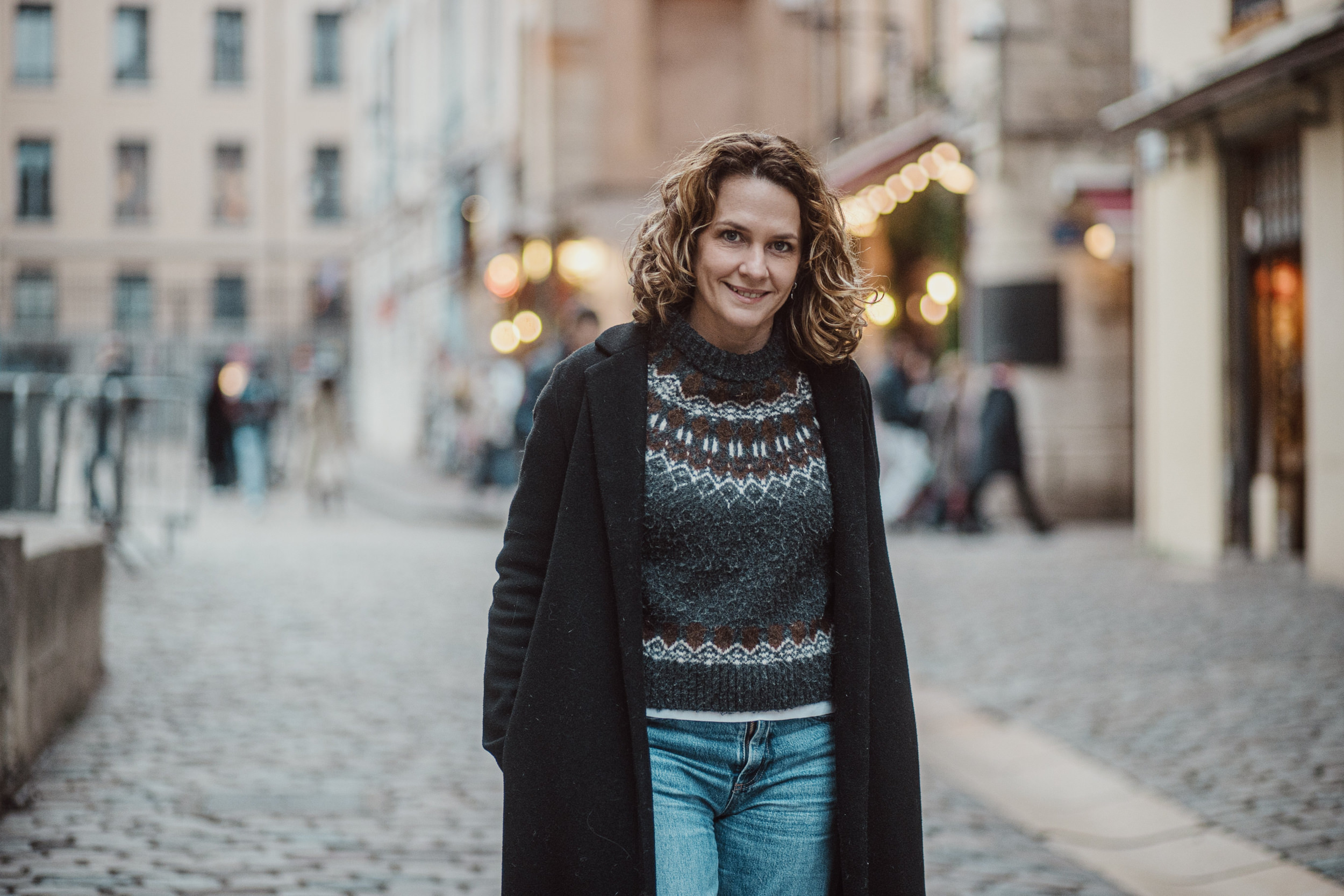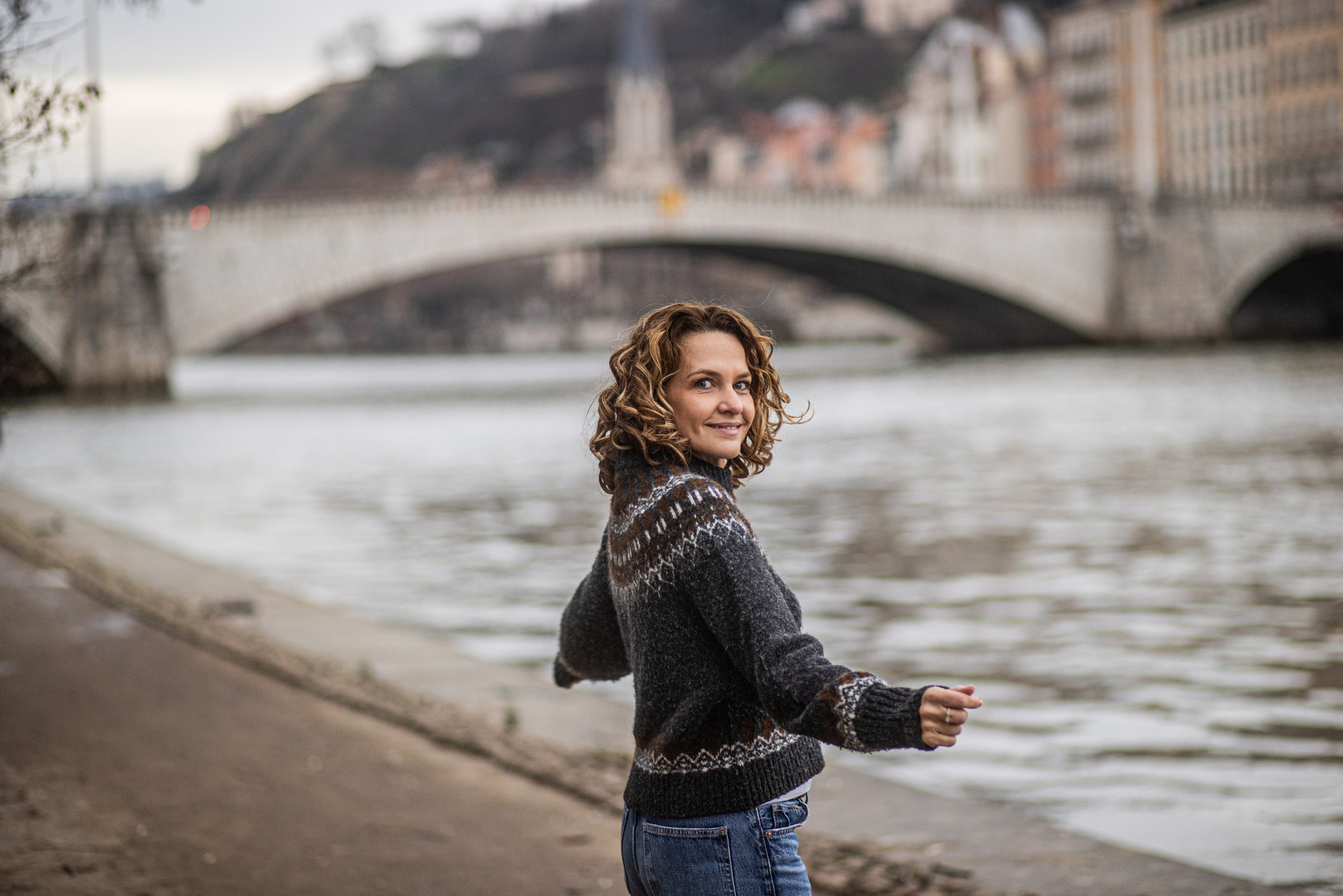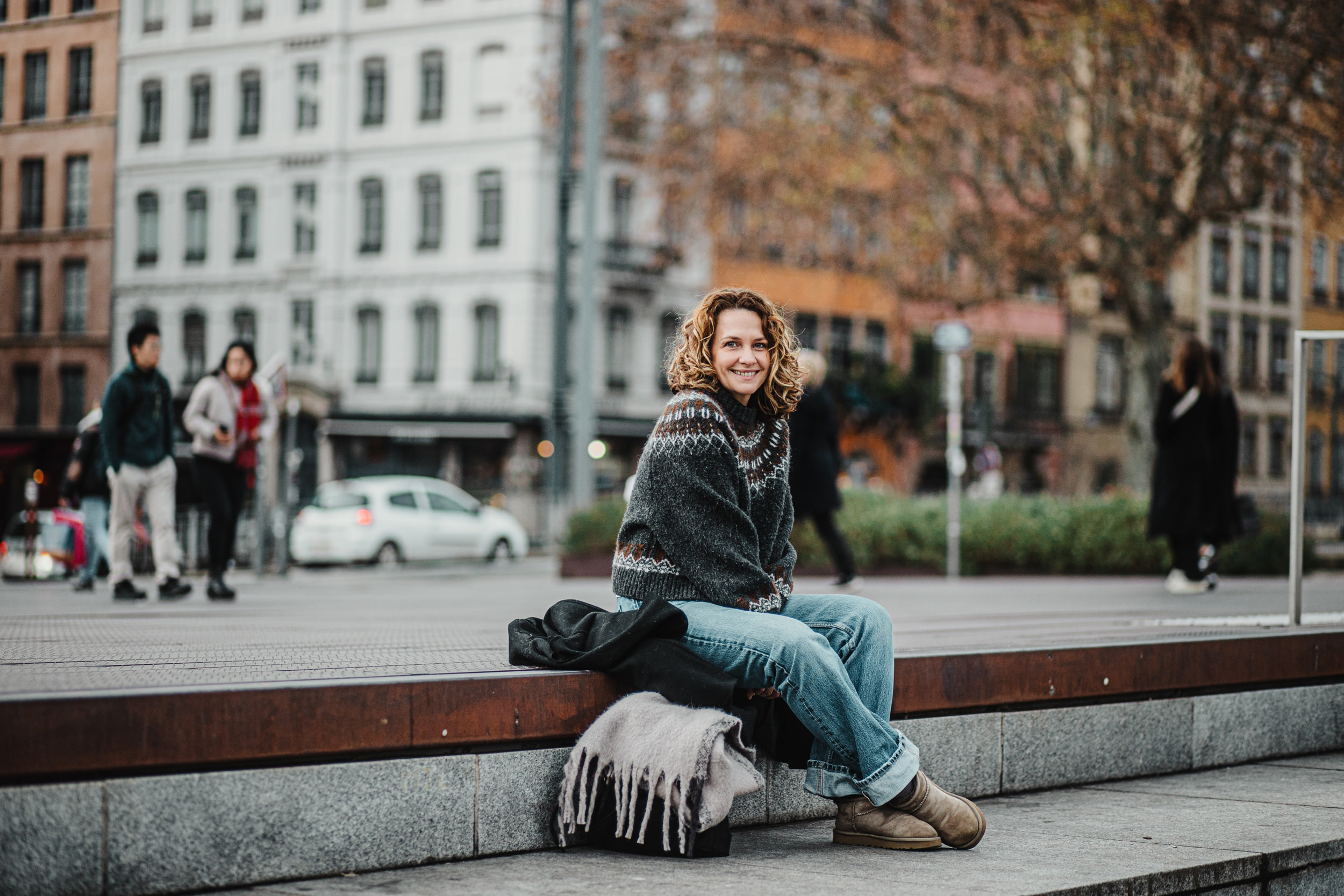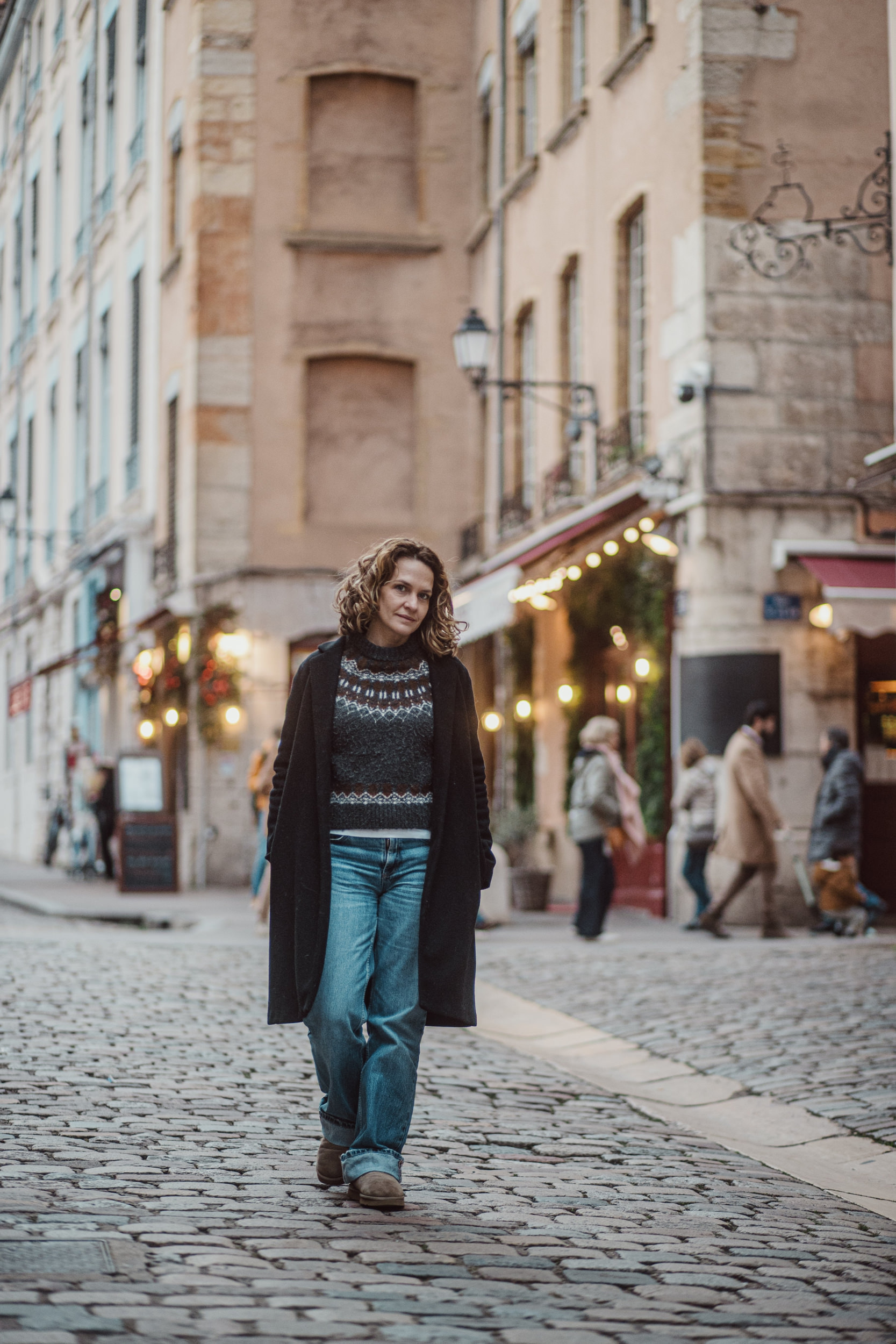 Oubliez les fonds papier statiques. Une séance en extérieur nous offre une lumière naturelle changeante et des textures brutes incomparables. Pavés, briques, quais de Saône… tout est là pour sublimer vos portraits.